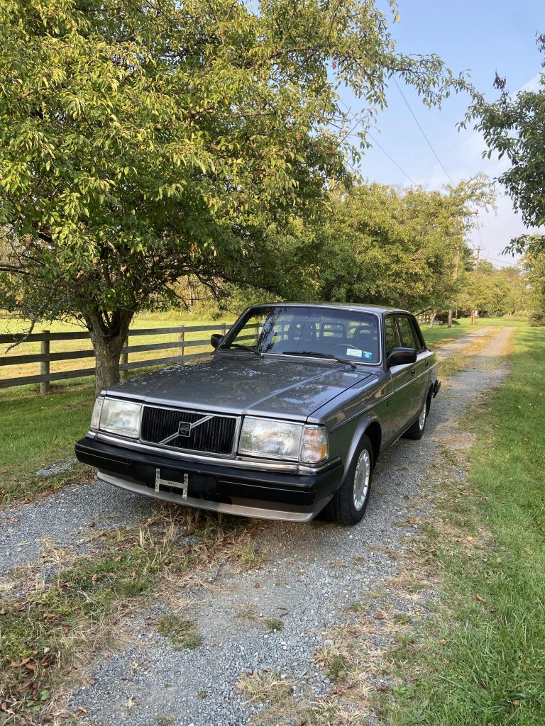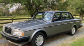 This 1989 Volvo 244 is finished in gray over black cloth and is powered by a 2.3-liter inline-four paired with a four-speed automatic transmission. Equipment includes air conditioning, heated seats, 14″ wheels, a Volvo-branded stereo, and power windows and locks.