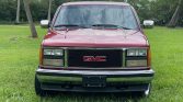 This 1990 GMC Sierra SLE K1500 is a regular cab Stepside pickup finished in red over grey cloth, and power is provided to the rear or all four wheels via a 5.7-liter V8 mated to a five-speed manual transmission and a dual-range transfer case. Additional equipment includes air conditioning, an aftermarket Pioneer CD stereo, a trailer hitch, and side window visors. The truck was registered in Ohio prior to the seller’s acquisition in July 2021.