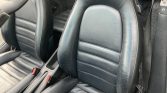 The interior is upholstered in black leather with a matching dashboard, center console, door panels, and carpets. Amenities include air conditioning, cruise control, an Alpine AM/FM cassette stereo, power-adjustable front seats, and power windows and locks.