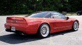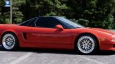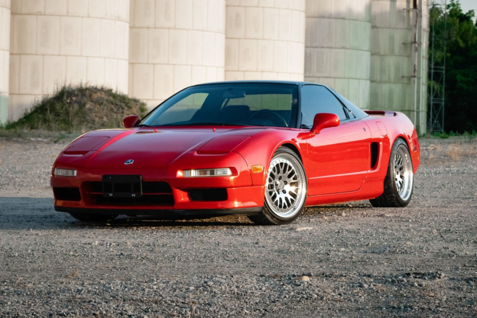 This 1991 Acura NSX is finished in red over black leather and is powered by a 3.0-liter V6 paired with a five-speed manual transaxle and a limited-slip differential. Equipment includes a rear spoiler, CCW wheels, automatic climate control, cruise control, and an Alpine stereo. Modifications consist of H&R lowering springs, a Downforce intake, and Flowmaster mufflers. The car remained registered in Texas until 2020 when it was acquired by the seller and relocated to Georgia.