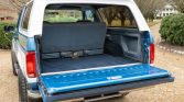 The truck is finished in blue and white and has reportedly been repainted. Exterior details include a white removable hardtop along with a chrome grille, bumpers, tubular side steps, and swing-out mirrors.