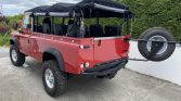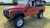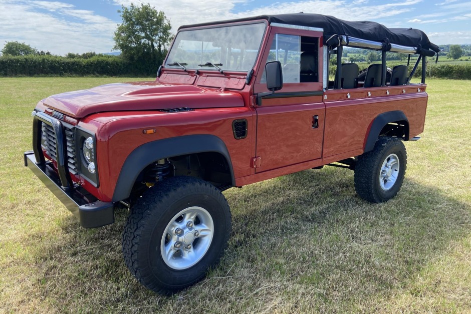 This 1991 Land Rover Defender 110 is a left-hand-drive example that spent time in the UK prior to being imported to the US by the seller in 2021. A beach runner-style refurbishment was subsequently performed, which included refinishing the frame, repainting the exterior in red, retrimming the interior in black upholstery, and overhauls to the suspension and braking systems. Power is provided by a 2.5-liter 200Tdi turbodiesel inline-four mated to a five-speed manual transmission and dual-range transfer case. Additional features consist of a locking center differential, a soft top with roll-up windows, LED lighting, inward-facing jump seats, Terrafirma suspension components, and BFGoodrich all-terrain tires.