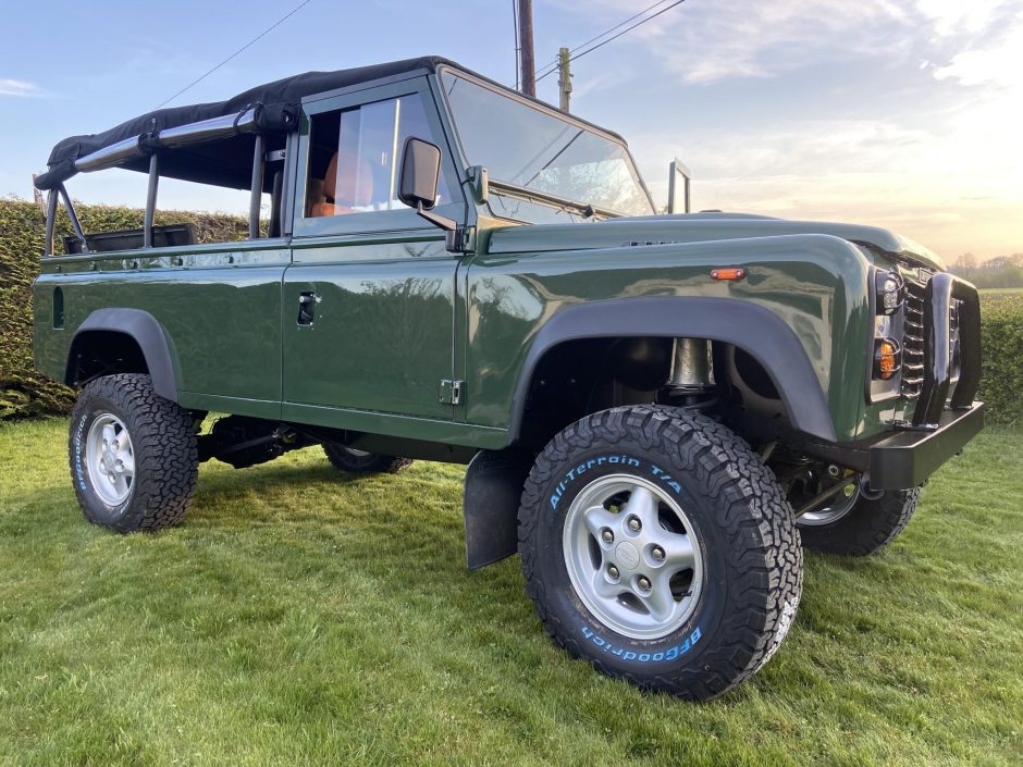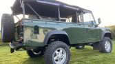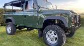 This 1991 Land Rover Defender 110 is a left-hand drive example that was acquired by the seller in the UK 18 months ago and imported to the US in 2021 following a beach runner-style refurbishment. The work included a repaint in Coniston Green, refinishing the frame, and interior reupholstery in brown synthetic suede as well as replacement of the timing belt, braking and suspension components, and radiator. Power is provided by a 2.5-liter 200Tdi turbodiesel inline-four driving all four wheels through a five-speed manual gearbox and a two-speed transfer case. The truck also features Terrafirma springs and shocks, 16″ Tornado wheels with all-terrain tires, a soft top with roll-up windows, LED headlamps, and cargo-area bench seats.