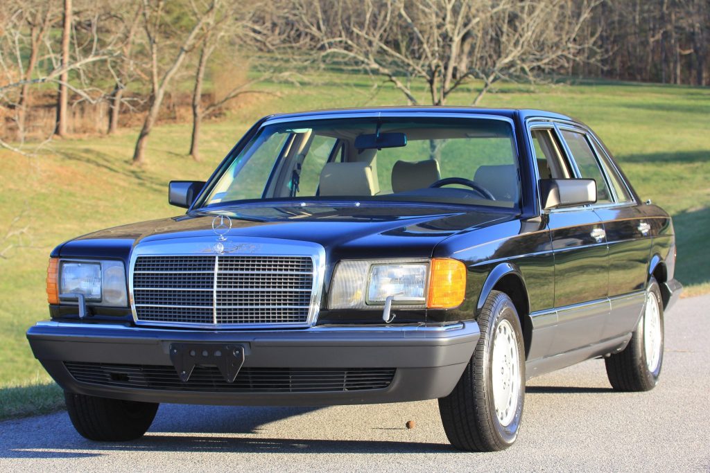 This 1991 Mercedes-Benz 420SEL is a one-owner car that was purchased in Greenville, South Carolina, and has been registered in North Carolina since new. The car is powered by a 4.2-liter V8 paired with a four-speed automatic transmission and is finished in black over tan leather. Equipment includes power windows and locks, driver and passenger front airbags, automatic climate control, a power-operated sunroof, power-adjustable front seats, Zebrano wood trim, and 15″ Gullideckel alloy wheels.