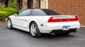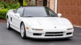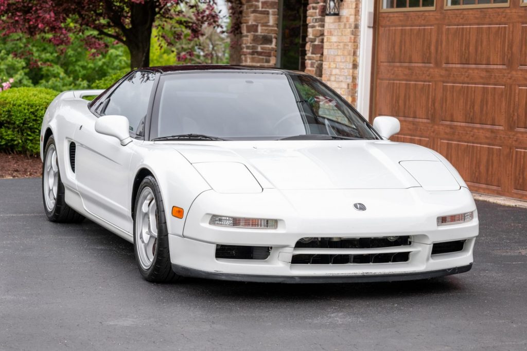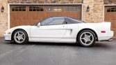 This 1992 Acura NSX is one of 238 examples that were finished in Grand Prix White for the model year, and it is powered by a 3.0-liter V6 paired with a five-speed manual transaxle. Equipment includes 16″ and 17″ Enkei wheels, Bilstein dampers, a Comptech exhaust system, suspension upgrades, automatic climate control, cruise control, a factory cassette stereo, and a trunk-mounted CD changer.