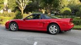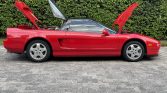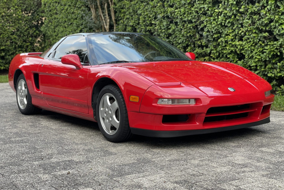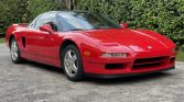 This 1992 Acura NSX is finished in red over black leather, the car is powered by a 3.0-liter V6 paired with a five-speed manual transaxle and a limited-slip differential. Features include 15″ and 16″ alloy wheels, four-wheel anti-lock disc brakes, a double-wishbone suspension, pop-up headlamps, automatic climate control, power aLessories, cruise control, smartphone connectivity, and a Bose sound system with a remote CD changer. Service performed during current ownership included replacement of the upper transmission case, timing belt, water pump, battery, and tires.