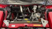 The aluminum body is finished in Formula Red (R-77) with a fixed roof and pillars finished in black. Exterior features include pop-up headlamps, fog lights, a power antenna, an integrated rear spoiler, and polished exhaust finishers.