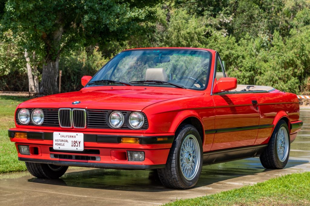 This 1992 BMW 325i convertible spent much of its life in Tennessee and was acquired by the seller out of California on July 2019. Now showing 55k miles, the car is finished in red with a black convertible top over a beige leather interior, and it is powered by a 2.5-liter inline-six paired with a five-speed manual transmission. Additional equipment includes 15″ wheels, cruise control, a factory cassette stereo, and a 13-button onboard computer. Service under current ownership is said to have included conversion of the air-conditioning system to R134 refrigerant as well as replacement of the convertible hydraulic cylinders and control module, oil pan and valve cover gaskets, power steering fluid, and trunk lid shocks.