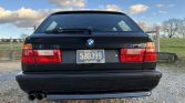 This 1992 BMW M5 Touring is one of just 891 produced worldwide and is finished in Diamond Black Metallic over M-Tech cloth. Power is supplied by a 3.8L S38B38 inline-six paired with a five-speed manual transmission and a limited-slip differential. Equipment includes an adaptive suspension, speed-sensitive power steering, dual-zone automatic climate control, a cassette stereo, power windows and mirrors, heated front seats, yellow-tinted high beams, fog lights, and 17″ Style 21 wheels.