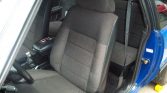 The cabin features seating upholstered in two-tone gray cloth with a matching dashboard, door panels, and carpeting. Additional features include power windows, power door locks, air conditioning, a locking glovebox, an aftermarket AM/FM/CD stereo, and a relocated trunk-release button.