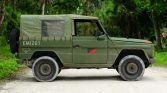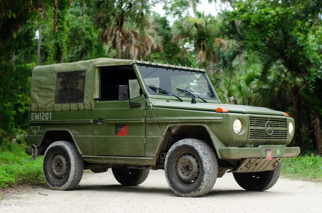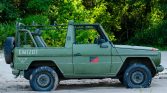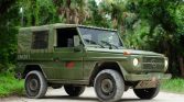 This 1992 Mercedes-Benz 250GD Wolf was reportedly used by the German military before being imported to the United States by the current owner in April 2020. Power is delivered to all four wheels via a naturally-aspirated 2.5-liter diesel inline-five paired with a four-speed manual transmission, a dual-range transfer case, and locking front and rear differentials. The truck is finished in distressed green over green vinyl, and equipment includes rear bucket seats, a roll-down canvas top, and a heater.