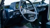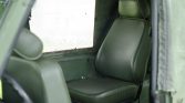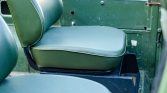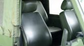 The seating surfaces are upholstered in green vinyl with a black dashboard and door panels. Amenities include rear bucket seats, a heater, and a dashboard-mounted light.
