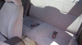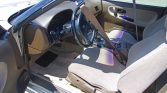 The cabin features seats upholstered in tan cloth along with matching carpets protected by floormats from a Maserati Quattroporte. Amenities include air conditioning, cruise control, power windows, motorized seatbelts, and a Sony CD stereo paired with aftermarket front and rear speakers.