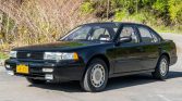 This 1992 Nissan Maxima SE is finished in black over beige cloth and is powered by a 3.0-liter DOHC V6 mated to a five-speed manual transaxle with a viscous limited-slip differential. Equipment includes 15″ alloy wheels, fog lights, a glass sunroof, air conditioning, cruise control, and an Alpine cassette stereo.