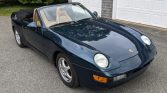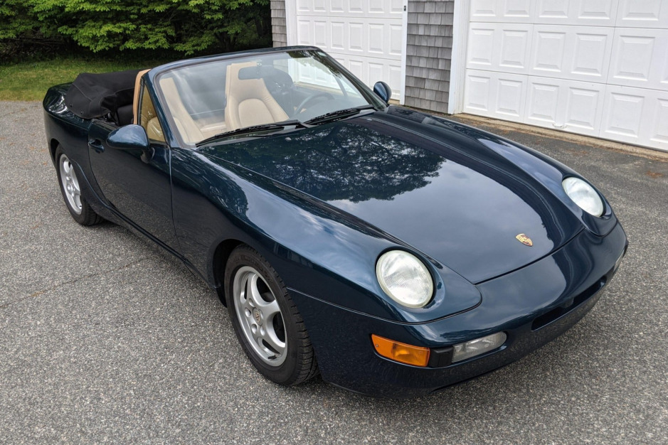 This 1992 Porsche 968 cabriolet is finished in Amazon Green Metallic over Cashmere Beige partial leather and is powered by a 3.0-liter inline-four paired with a six-speed manual transaxle. Additional equipment includes a black convertible top, automatic climate control, a HiFi sound system, power-adjustable seats, pop up headlights, and 16″ Cup wheels. The car was acquired by the seller in December 2017 and work performed under current ownership is said to have included replacement of the convertible top, clutch, flywheel, rear main seal, steering rack, and cooling fans.