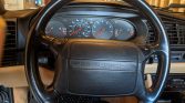 The leather-wrapped airbag steering wheel frames a 180-mph speedometer, a tachometer with a 6,600-rpm redline, and gauges for engine temperature, fuel level, oil pressure, and voltage. The six-digit mechanical odometer shows 76k miles.