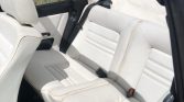 The cabin features white vinyl upholstery on the front seats, door panels, center console, and lower dash. Amenities include power windows, air conditioning, and a Volkswagen Heidelberg AM/FM cassette stereo. Discoloration is present on the convertible top headliner.