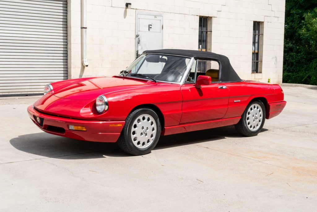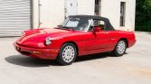 This 1993 Alfa Romeo Spider Veloce is finished in red over tan and is powered by a 2.0-liter inline-four paired with a five-speed manual transmission. Equipment includes a black soft top, air conditioning, 15″ alloy wheels, four-wheel disc brakes, power windows, and an Alpine cassette stereo. The car spent time in Michigan and Florida before the seller acquired it in Georgia in February 2021. Subsequent work reportedly included refreshing the interior and replacing the tires, fluids, front shocks, brake pads, fuel tank and lines, engine mounts, and brake and clutch master cylinders.