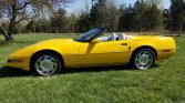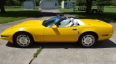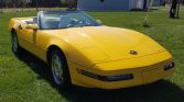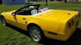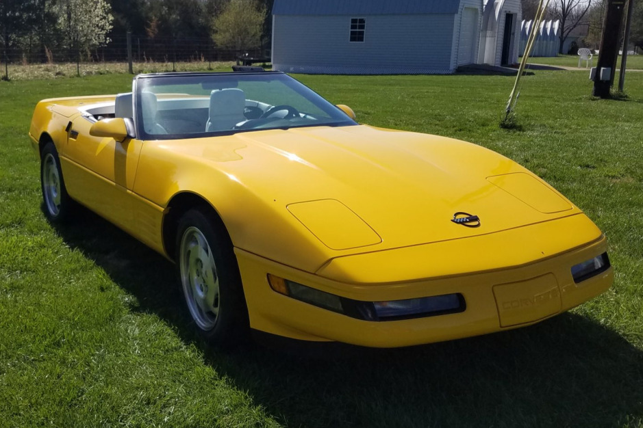 …This 1993 Chevrolet Corvette convertible is finished in yellow over white leather and is powered by a 5.7-liter V8 paired with a four-speed automatic transmission. Additional equipment includes a white convertible top, pop-up headlights, power aLessories, keyless entry, cruise control, and an AM/FM/cassette stereo.