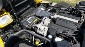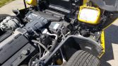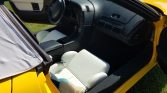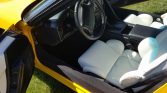 The car is finished in Competition Yellow and features a white convertible. Additional exterior details include pop-up headlights, fog lights, front fender vents, a retractable antenna, and dual exhaust finishers.