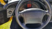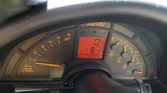 The leather-wrapped steering wheel frames a digital speedometer and fuel gauge, an analog tachometer, and auxiliary gauges. The digital odometer shows 14k miles.