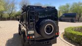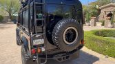 The truck was reportedly refinished in Java Black and features black diamond plating on the fenders, hood, and rear quarter panels. Equipment includes a Safari Gard front bumper, front skid plate, 10,000-lb Superwinch, snorkel intake system, Front Runner roof rack with an LED light bar and rear aLess ladder, an external roll cage, Safari Gard rock sliders, a high-lift jack, and a Mantec rear tire carrier.
