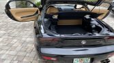 This 1993 Mazda RX-7 is finished in black over tan leather and is powered by a replacement twin-turbocharged 1.3L rotary engine paired with a five-speed manual transmission and a limited-slip differential. Factory equipment includes 16″ alloy wheels, a power sunroof, leather seats, and air conditioning, while modifications consist of a GReddy turbo timer, a Racing Beat exhaust system, and Pettit Racing suspension components along with an aftermarket air intake, intercooler, radiator, and engine mounts. Maintenance performed under current ownership included fluid changes along with a replacement windshield, antenna, battery, air filter, fuel filter, spark plugs, and ignition wires.