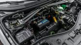 The 2.0-liter 3S-GTE inline-four was blueprinted and rebuilt with balanced rotating assemblies by Synaptic3 Engineering, and it is fitted with a Garrett GT3071R turbocharger, an AEM engine management system, and SAMCO silicone boost hoses. Other modifications include polished coolant hard lines, 9″ intercooler fans in a custom mirrored shroud, and a custom-fabricated turbo-back exhaust system with a 3″ downpipe, high-flow catalytic converter, and polished twin mufflers with DTM-style tips. Service in November 2020 at Flatout Motorsports of Mendon, Massachusetts, consisted of diagnosing a poor running condition, dyno-tuning the car for street use, fitting a knock sensor, and replacing the spark plugs.