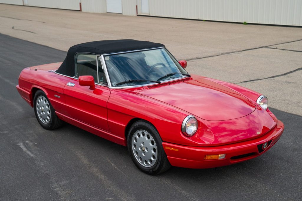 This 1994 Alfa Romeo is #151 of 190 Commemorative Edition Spiders produced and is finished in Alfa Red over black leather and suede. Power comes from a 2.0-liter inline-four paired with a five-speed manual transmission and a limited-slip differential, and additional equipment includes a black convertible soft top, 15″ alloy wheels, power steering, a factory cassette stereo, a remote CD changer, and unique badging. The seller acquired the car in 2014 and has since added approximately 1k of the 9k total miles.