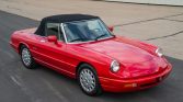 This 1994 Alfa Romeo is #151 of 190 Commemorative Edition Spiders produced and is finished in Alfa Red over black leather and suede. Power comes from a 2.0-liter inline-four paired with a five-speed manual transmission and a limited-slip differential, and additional equipment includes a black convertible soft top, 15″ alloy wheels, power steering, a factory cassette stereo, a remote CD changer, and unique badging. The seller acquired the car in 2014 and has since added approximately 1k…
