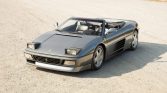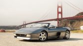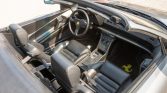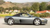 This 1994 Ferrari 348 Spider is finished in metallic gray over black Connolly leather, and it is powered by a 3.4-liter V8 paired with a five-speed manual transaxle and a limited-slip differential. Equipment includes a black convertible top and boot cover, pop-up headlights, 17″ alloy wheels, air conditioning, a gated shifter, drilled metal pedals, a Pioneer stereo, and a leather-wrapped steering wheel.