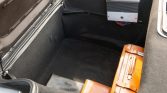 The cabin features seats upholstered in black Connolly leather as well as a matching dashboard, door panels, carpets, and floor mats. Equipment includes air conditioning, power windows, a gated shifter, drilled metal pedals, and an aftermarket Pioneer stereo and CD player.