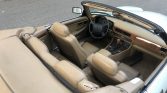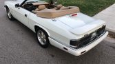 The exterior is finished in Glacier White with two-tone pinstripes and features a power-operated tan soft top with a matching boot cover, a rear spoiler, and headlight washers.