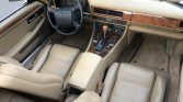 The power-adjustable and heated front seats are upholstered in tan leather with burl wood veneer accenting the matching dashboard, center console, and door panels. Amenities include a factory cassette stereo, automatic climate control, and cruise control.