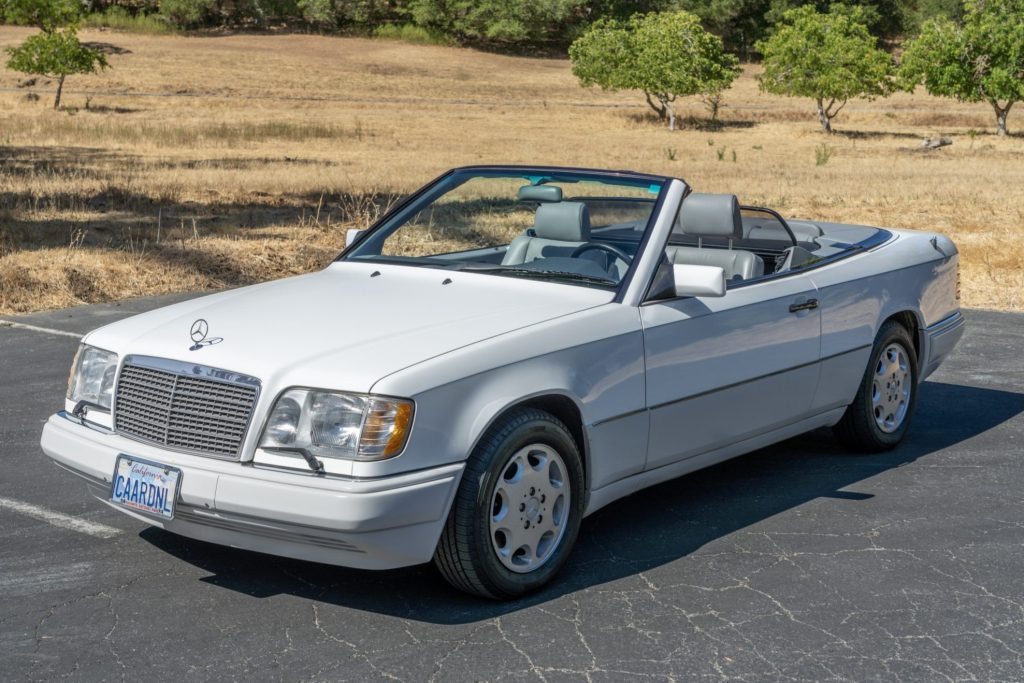 This 1994 Mercedes-Benz E320 cabriolet reportedly spent time with one family in New Jersey and California before the seller’s acquisition in 2018. The car is finished in Polar White over gray leather and is powered by a 3.2-liter inline-six paired with a four-speed automatic transmission. Additional equipment includes a black convertible soft top, automatic climate control, an AM/FM cassette stereo, cruise control, power-adjustable heated front seats, traction control, a wind deflector, headlight wipers, and 15″ alloy wheels. Service since 2018 consisted of replacing the radiator and hoses, the thermostat, the engine wiring harness, and the timing chain cover gasket.
