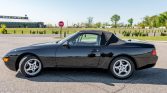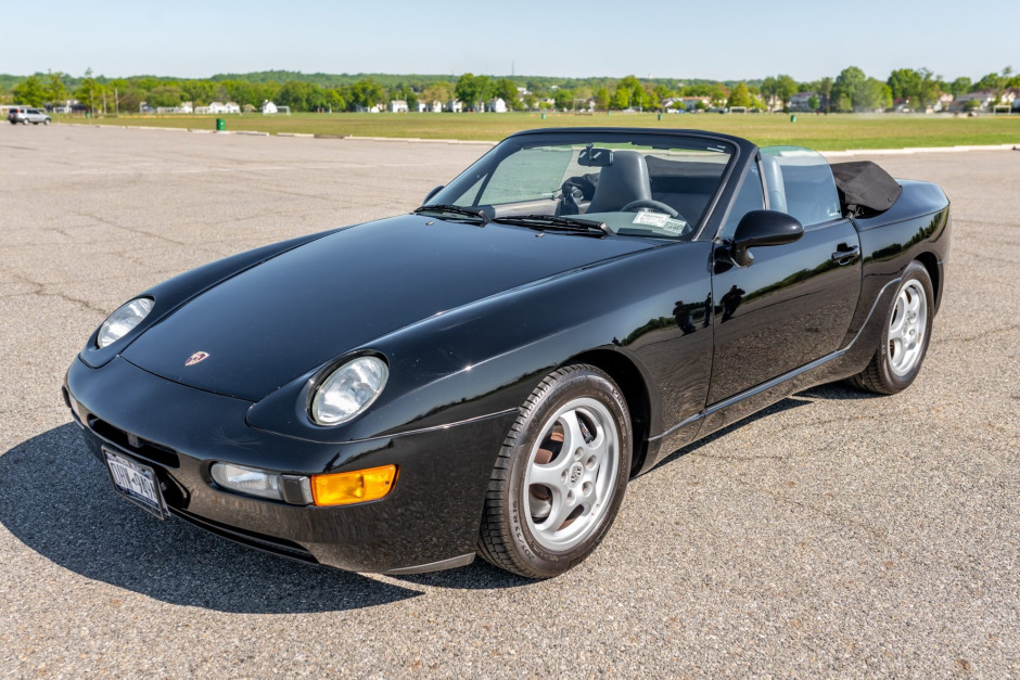 This 1994 Porsche 968 Cabriolet is finished in black over gray partial leather and is powered by a 3.0-liter inline-four paired with a four-speed Tiptronic automatic transaxle. Additional equipment includes a black convertible top, air conditioning, a Blaupunkt CD stereo, power-adjustable seats, power windows and locks, and 16″ Cup wheels. The car was acquired by the seller in 2005 and maintenance performed under current ownership is said to have included a replacement convertible top cable.
