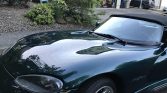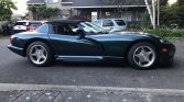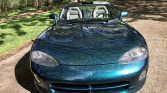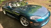 This 1995 Dodge Viper RT/10 is finished in Emerald Green Metallic over gray leather, and power is provided by an 8.0-liter V10 paired with a six-speed manual transmission. Equipment includes a limited-slip differential, air conditioning, an Alpine CD stereo, an aftermarket shift knob, a canvas soft top, and side windows. The battery was replaced and the oil was changed in February 2021.