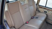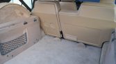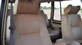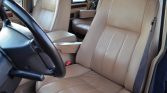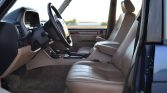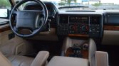The interior is trimmed in Sorrel Tan Connolly leather with matching carpets along with wood veneer aLents on the dash, center stack, and door panels. Amenities include eight-way power-adjustable front seats, a 60/40-split folding rear bench, air conditioning, a power sunroof, a dash-mounted analog clock, and a factory Land Rover-branded cassette stereo.