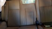 The cabin is trimmed in tan leather with matching carpets along with wood veneer accents on the dash, center console, gear selectors, and door panels. Amenities include dual-zone climate control, a dash-mounted analog clock, power-adjustable and heated front seats with fold-down armrests, and a 60/40-split folding rear bench. The wood veneer center console accents were reportedly refinished during current ownership.