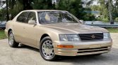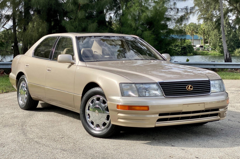 This 1995 Lexus LS400 is finished in Cashmere Beige Metallic over an Ivory leather interior and is powered by a 4.0-liter V8 paired with a four-speed automatic transmission. Additional equipment includes an electric sunroof, dual-zone automatic climate control, cruise control, a digital AM/FM cassette stereo, a glovebox-mounted CD changer, power-adjustable front seats, anti-lock brakes, and 16″ alloy wheels. The car was first registered in California and remained in the state prior to its May 2021 acquisition by the selling dealer. Service in preparation for the sale included an oil change and recharging the air conditioning system.