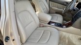 The cabin features Ivory (LC01) leather upholstery on the seats and door-panel inserts as well matching carpets, a contrasting dashboard, and walnut wood trim. The front seats are power-adjustable, and additional equipment includes dual-zone automatic climate control, cruise control, a premium speaker system, and a digital AM/FM cassette stereo paired with a glovebox-mounted CD changer. The air conditioning system was recharged in preparation for the sale.