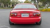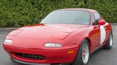This 1995 Mazda was acquired by the seller in 2017 and is finished in Classic Red over tan leather. The car is powered by a 1.8-liter inline-four mated to a five-speed manual transmission, and equipment includes a removable hardtop, 14″ Enkei wheels, a front lip spoiler, air conditioning, cruise control, a quick-release steering wheel, XIDA coilovers, and a Mazda Sensory Sound system.