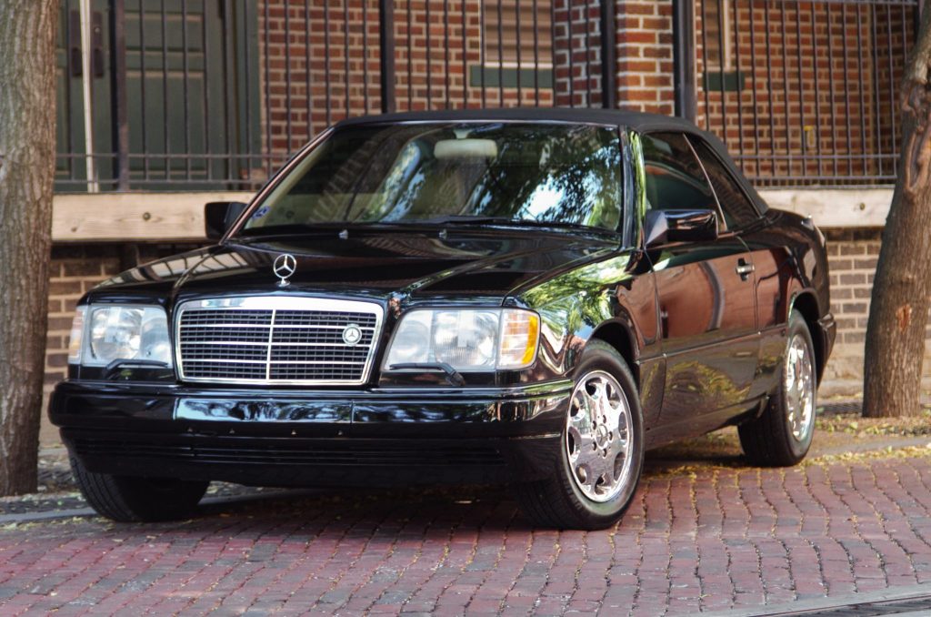 This 1995 Mercedes-Benz E320 Cabriolet spent time in Oklahoma, Arizona, and Kansas before being acquired by the seller in July 2021 and now shows 73k miles. The car is finished in black over beige leather and is powered by a 3.2-liter inline-six paired with a four-speed automatic transmission. Features include a power-operated black convertible top, chrome 15″ wheels, a wind deflector, power-adjustable and heated front seats, automatic climate control, and a Continental CD stereo with Bluetooth connectivity.