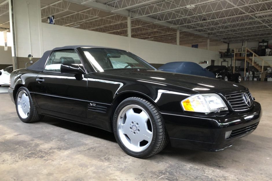 This 1995 Mercedes-Benz SL600 is finished in black over Anthracite Exclusive leather and is powered by a 6.0-liter V12 mated to a four-speed automatic transmission. Equipment includes a black canvas soft top, color-matched removable hardtop, 18″ AMG Monoblock wheels, electronic self-leveling suspension, heated seats, burl wood trim, and a Becker stereo with a six-disc Alpine CD changer. The car was first registered in Arizona and was acquired by the seller on August 2018. Over $25k worth of work has been carried out by the seller, and recent service in May 2021 consisted of replacing the battery and cabin air filter, refreshing the air conditioning, and performing an oil change.