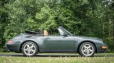 This 1995 Porsche 911 Carrera cabriolet is finished in Aventurine Green Metallic over Cashmere Beige leather and is powered by an air-cooled 3.6L flat-six mated to a six-speed manual transaxle and a limited-slip differential. Equipment includes a replacement black soft top, an Automatic Braking Differential (ABD), a wind deflector, an onboard computer, cruise control, 17″ Cup II wheels, front seats with powered height adjustment, and a Becker-Porsche cassette stereo paired with a trunk-mounted CD changer. The car…