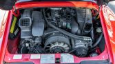 This 1995 Porsche 911 Carrera coupe is powered by a 3.6-liter flat-six paired with a six-speed manual transaxle and a limited-slip differential, and it is finished in Guards Red over black leather. Modifications include a Steve Wong ECU chip, Euro-spec bumpers and side skirts, a Fister muffler, and Bilstein suspension components resulting in a lowered ride height. Alloy 18″ Turbo-Twist alloy wheels are mounted, and additional equipment includes integrated driving lights, power-operated front hardback sport seats, air…