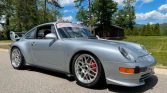 This 1995 Porsche 911 Carrera coupe was acquired by the seller approximately two decades ago and was subsequently modified for track use. Finished in silver, the car is powered by a 3.8-liter VarioRam flat-six paired with a six-speed manual transaxle and a limited-slip differential. Additional equipment includes a roll cage with door bars, a GT2-style carbon fiber rear wing, a front splitter, AMB transponder, dual Recaro fixed-back bucket seats with harnesses, RS-style door panels, and plexiglass side and rear windows. Approximately 95k miles have been added during current ownership, and the car has reportedly been stored since 2019.