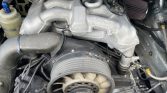 The 3.8-liter VarioRam flat-six is a replacement unit that was rebuilt and installed by European Performance Engineering of Natick, Massachusetts in 2013. The six-speed manual transaxle has been fitted with shorter gears, an upgraded clutch and flywheel, and steel synchros, sliders, and shift forks. Power is sent to the rear wheels through a Porsche Motorsports limited-slip differential.