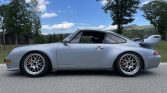 The car was finished from the factory in Polar Silver (L92M) and was repainted in 2019. Accidents in 2012 and 2013 resulted in damage to the passenger side of the vehicle that was subsequently repaired both times. A sunroof delete panel has been added, along with a carbon fiber GT2-style rear wing, an RS-style front splitter and side skirts, and plexiglass rear and side windows.