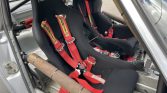 The 18” BBS wheels feature silver-painted centers with polished lips and are mounted with Hoosier tires sized 245/40 up front and 275/35 out back. The car rides on Bilstein springs with an aftermarket front strut tower brace and a GT3-spec rear sway bar. Stopping power is provided by Porsche “Big Red” brake calipers paired with Alcon slotted rotors up front and cross-drilled units out back. The emergency brake and power steering have been removed, and the seller states that three spare sets of wheels will accompany the vehicle.